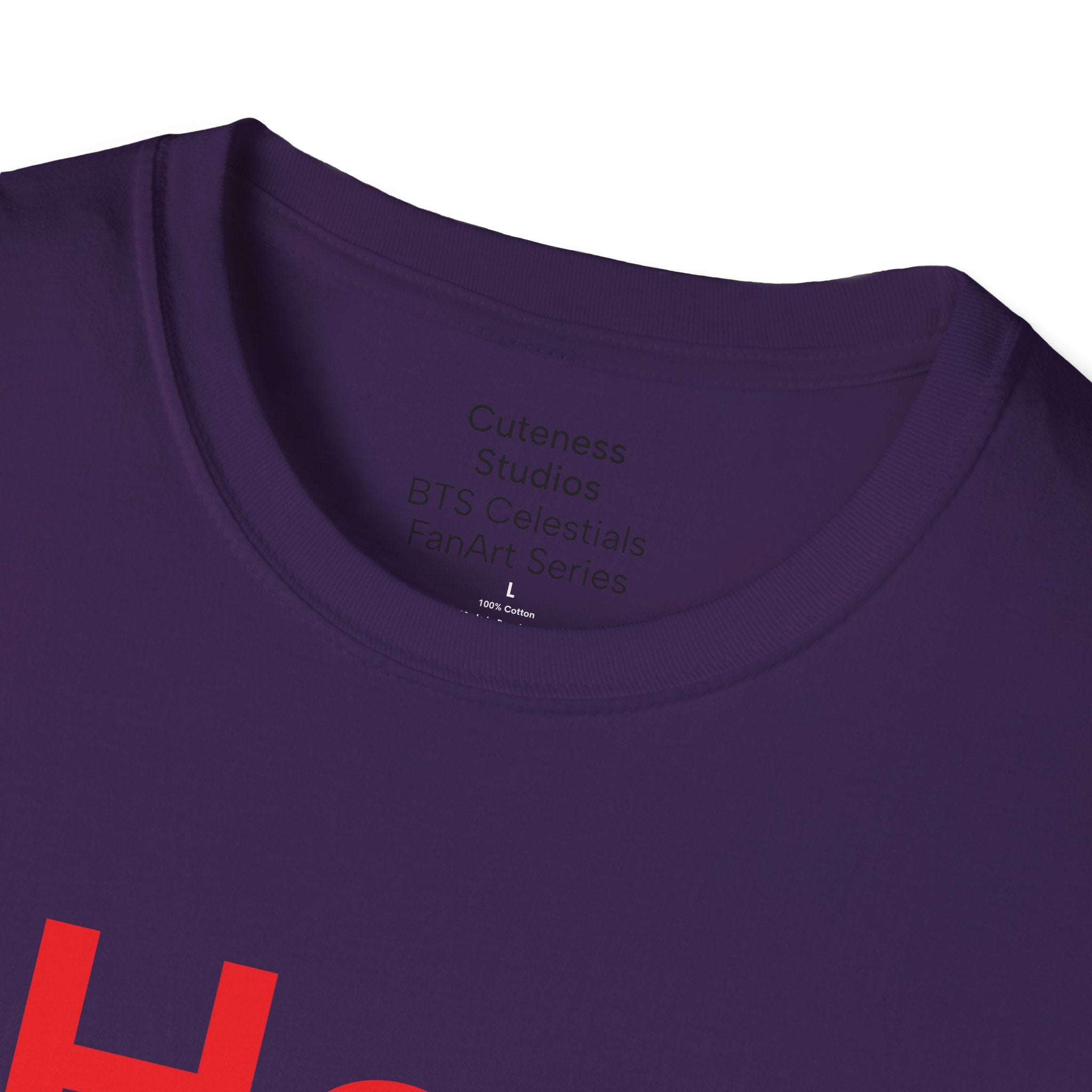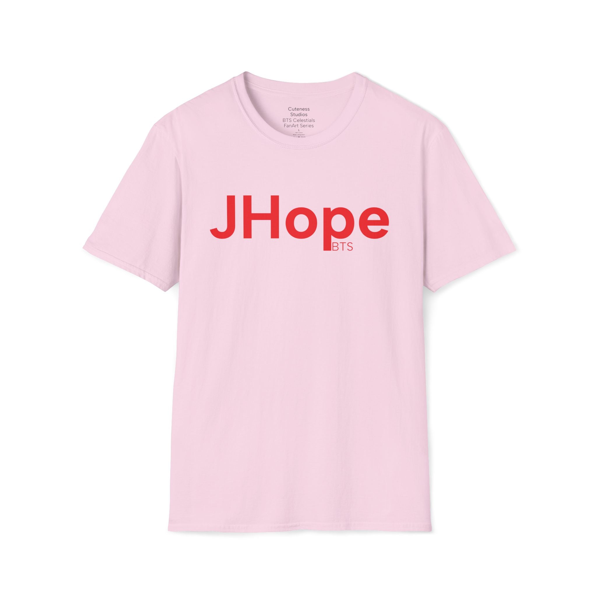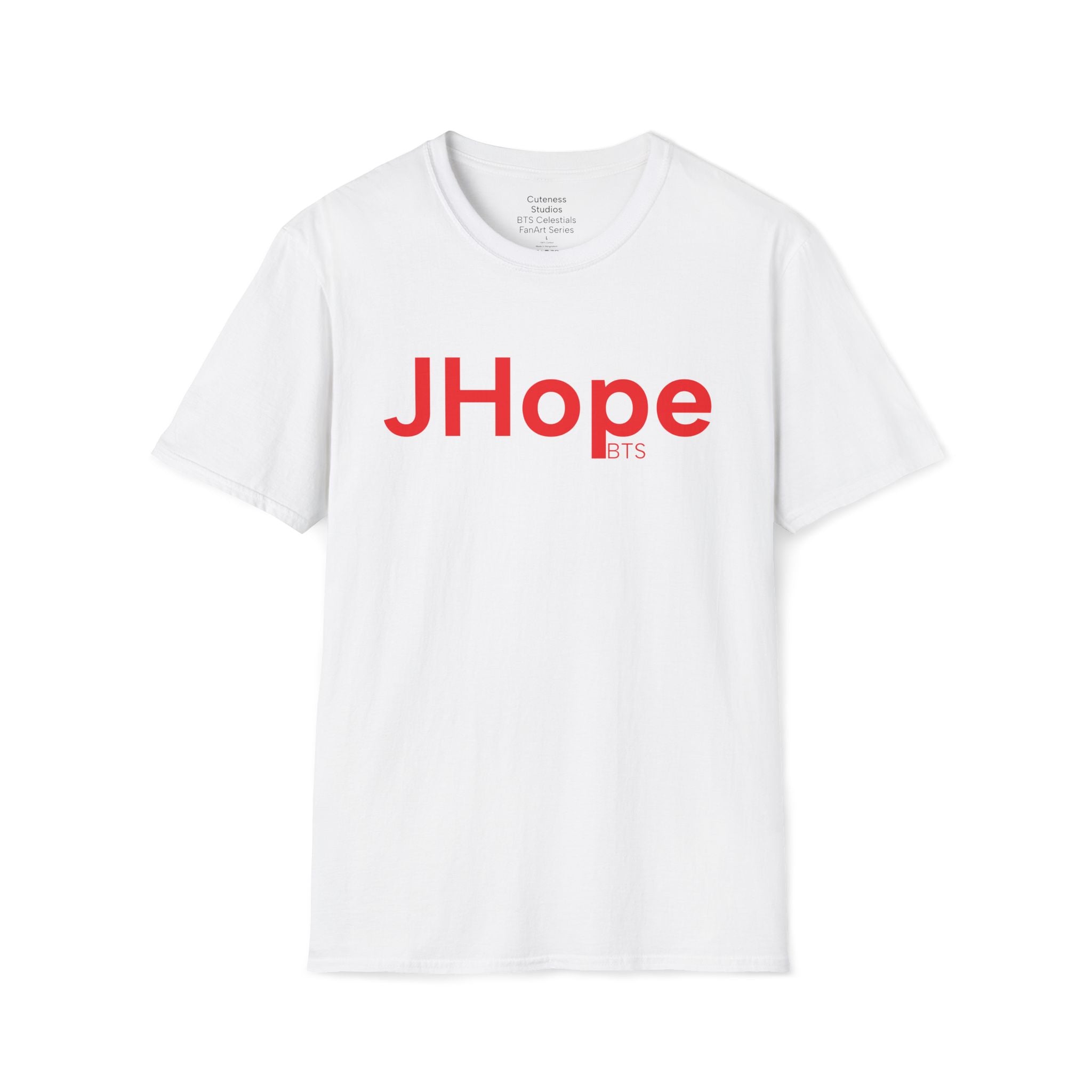 JHope of BTS is featured on this t-shirt with red being the main focus in homage to JHope's Hope On The Stage Tour. The art, using Procreate and Adobe Creative Suite software, was inspired by his photo shoot released during his tour.